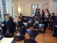 Stunde vor der Versammlung im Heine-Haus zu anregenden Gesprächen.