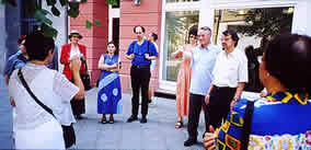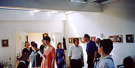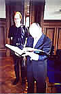 Dr. Eew Overgaauw (rechts) zeigt eine Vitrinenausstellung