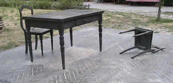 Fußboden darstellt, sowie einem Tisch und zwei Stühlen, von