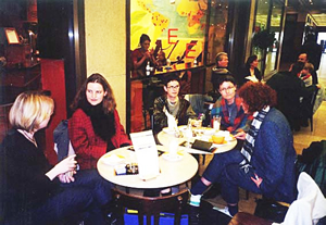 vor der Versammlung im HeineHaus zu anregenden Gesprächen.