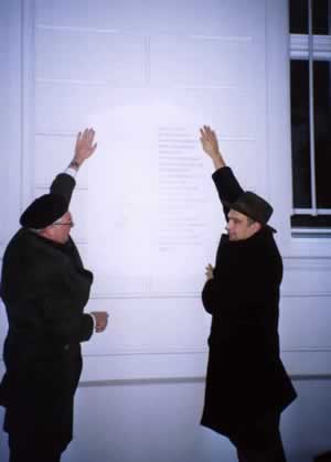 einmal mit dem Gedenktafel-Entwurf im Größenverhältnis