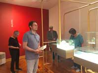 | oben: Adrian Schliebe führte und durch die Dauerausstellung Im Kleist Museum |