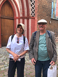 Ina Pfitzner, unsere Gastgeberin in Frankfurt (Oder), mit Nikolaus Gatter während ihrer Stadtführung.